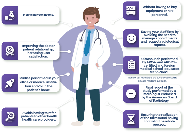 Performing scheduled ultrasounds in your own office, with no equipment or technical personnel costs, which also avoids referring the patient to another health center.